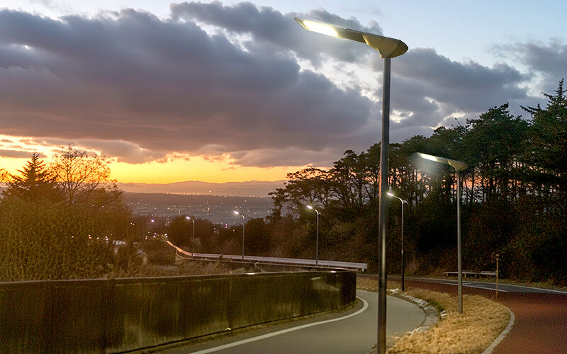 東京都伊豆大島町様の国道等にソーラー外灯「SUPERLIGHTシリーズ(現SUNMOVEシリーズ)」を52基納入しております(2025年11月現在)