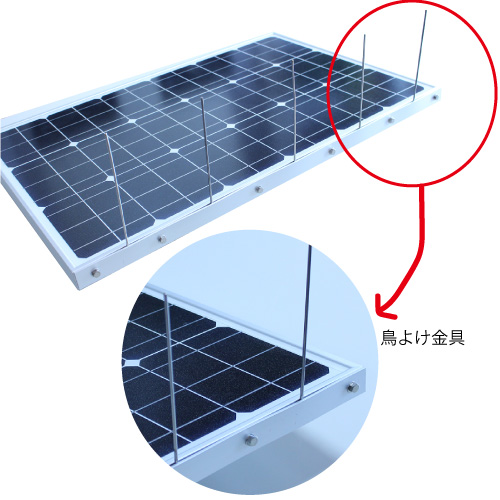 オプションでパネル部に鳥よけ金具を取り付け可能です。