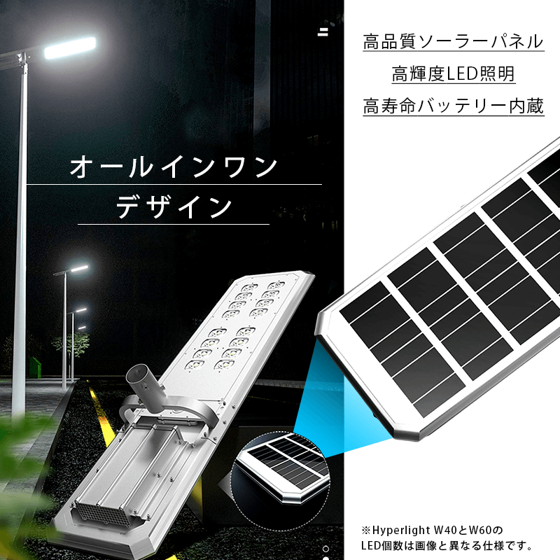 ソーラーパネル、照明一体型のオールインワンデザイン