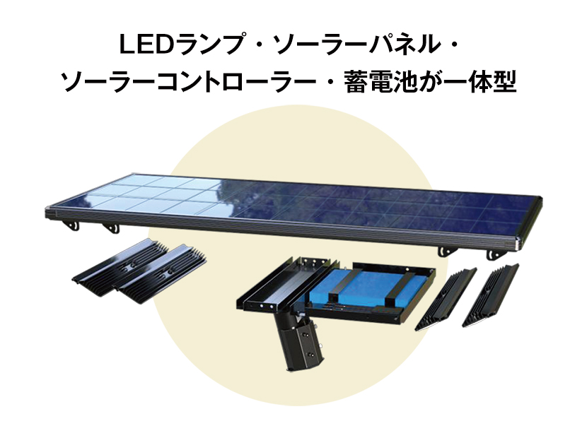 ソーラーLED照明 SIGEN-TLIGHT/S は、ソーラーパネル160W、LED照明最大60W 12800lm 。